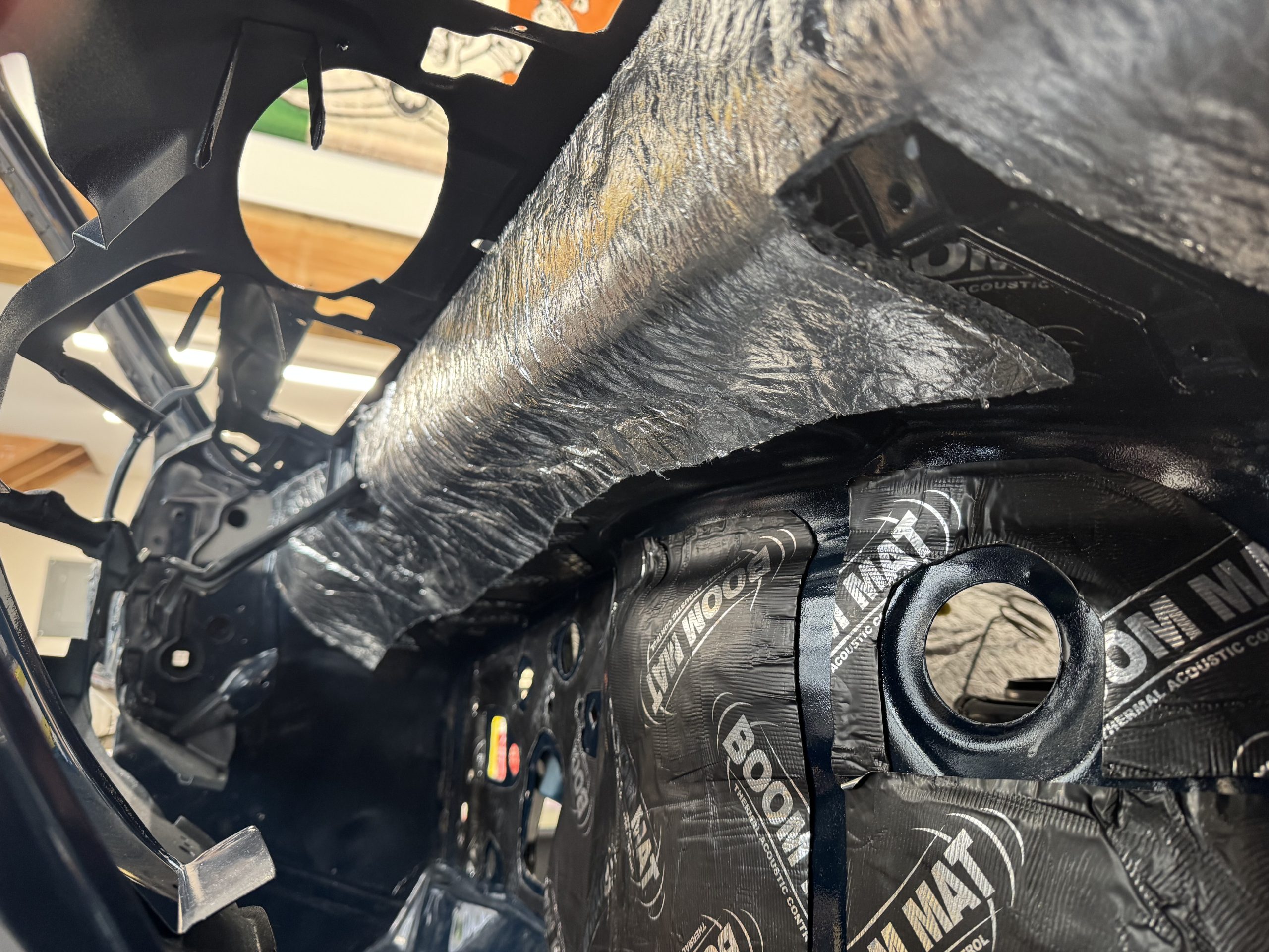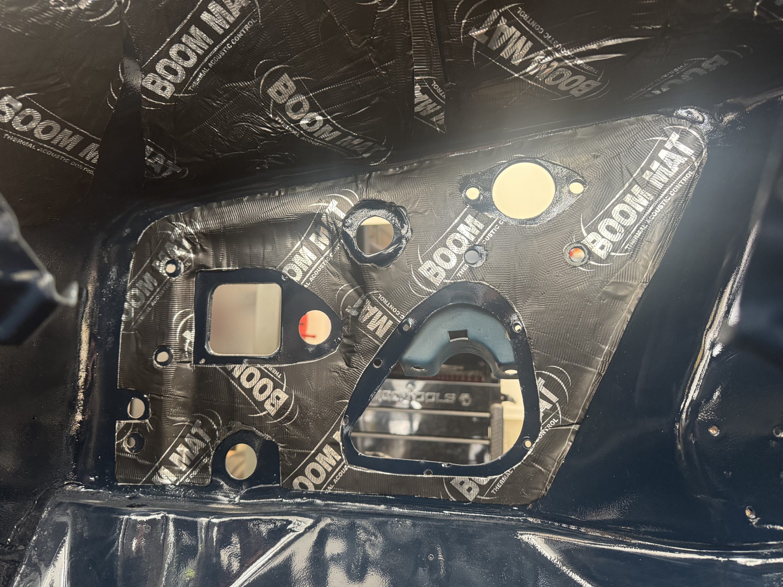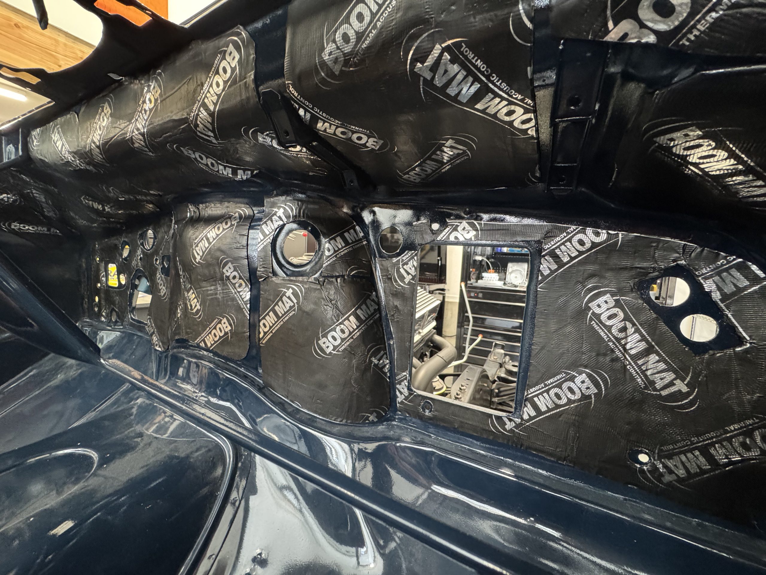Boom Mat is attached to the firewall for sound damping